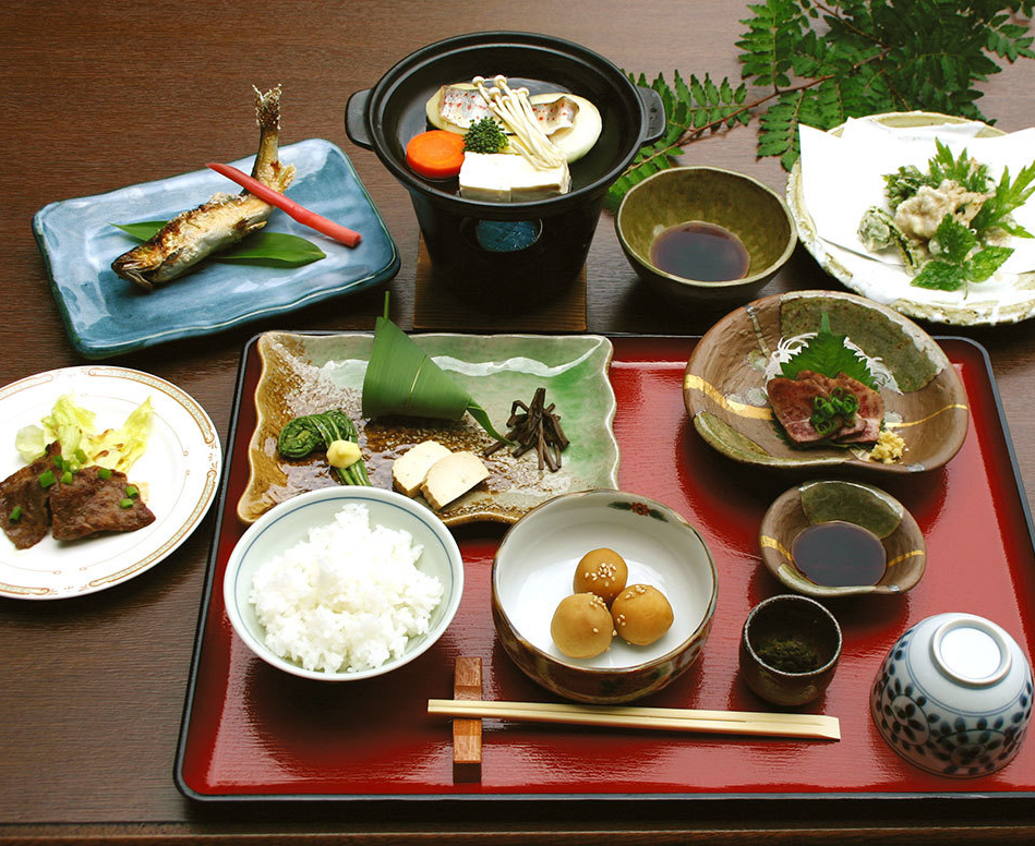飛騨牛、川魚、山菜、きのこなどの山里料理にまごころを添えて・・・。地元の食材を地元の調理方法でご提供させていただいております。