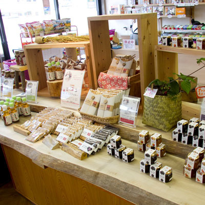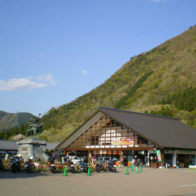 せせらぎ街道沿いにある道の駅。地元の特産品販売所や味自慢と個性豊な飲食店が揃い、休憩場所として人気です。いろり火で焼いたアマゴやイワナの塩焼きが味わえます(有料)。