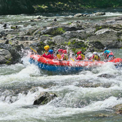 時には水しぶきを上げて波を乗り越え、巧みなボートコントロールで岩をすり抜ける、そんなスリルと興奮をラフティングツアーで味わうことができます。